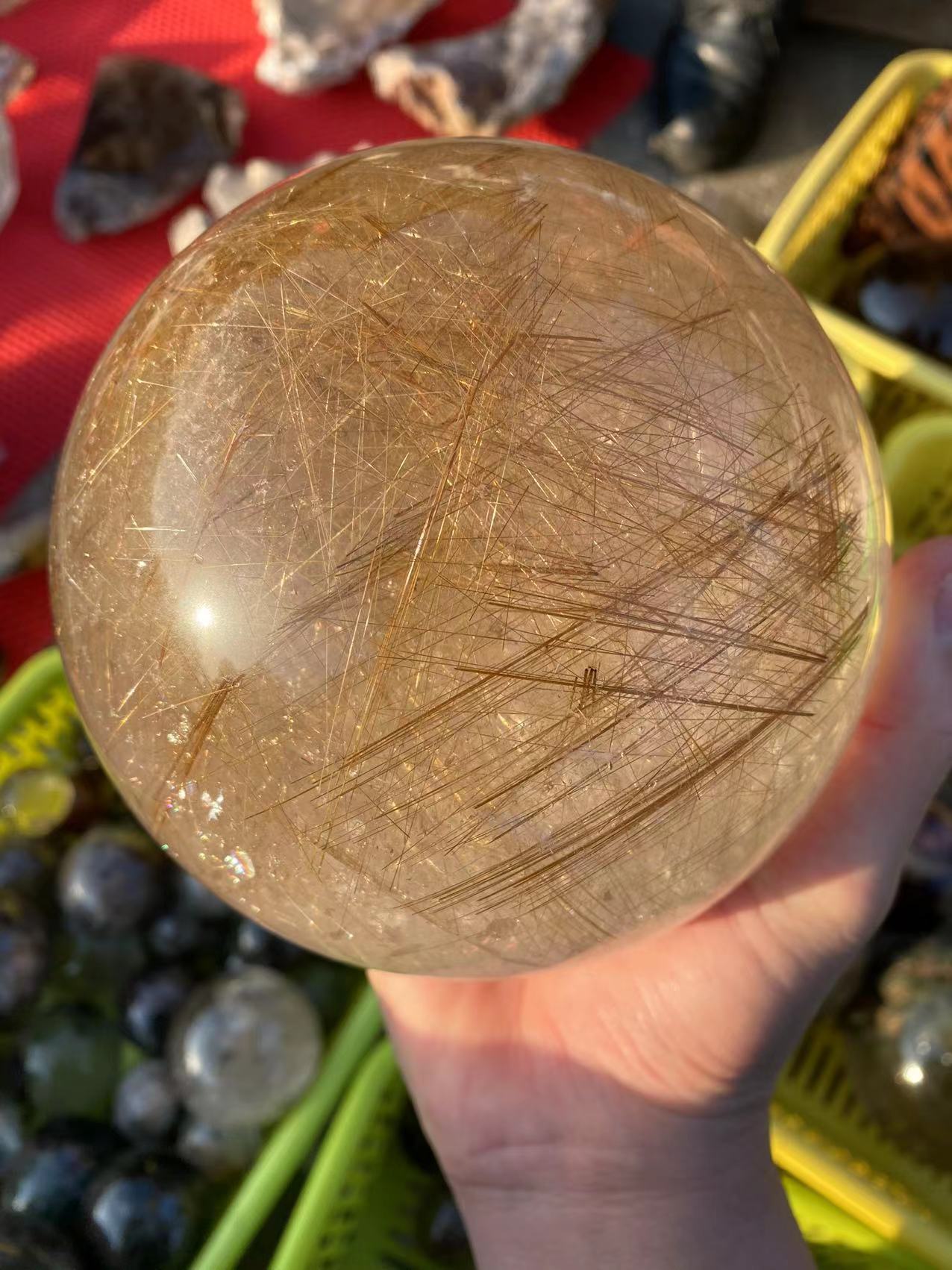 Gold hair rutilated quartz sphere 7