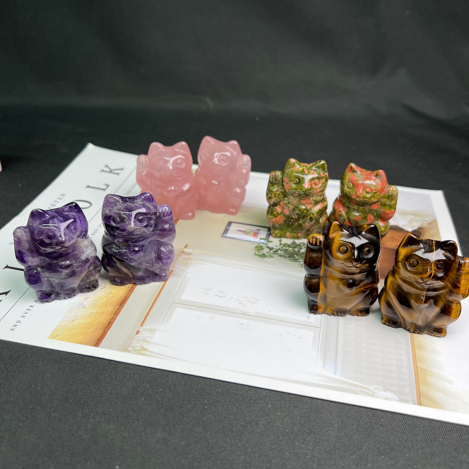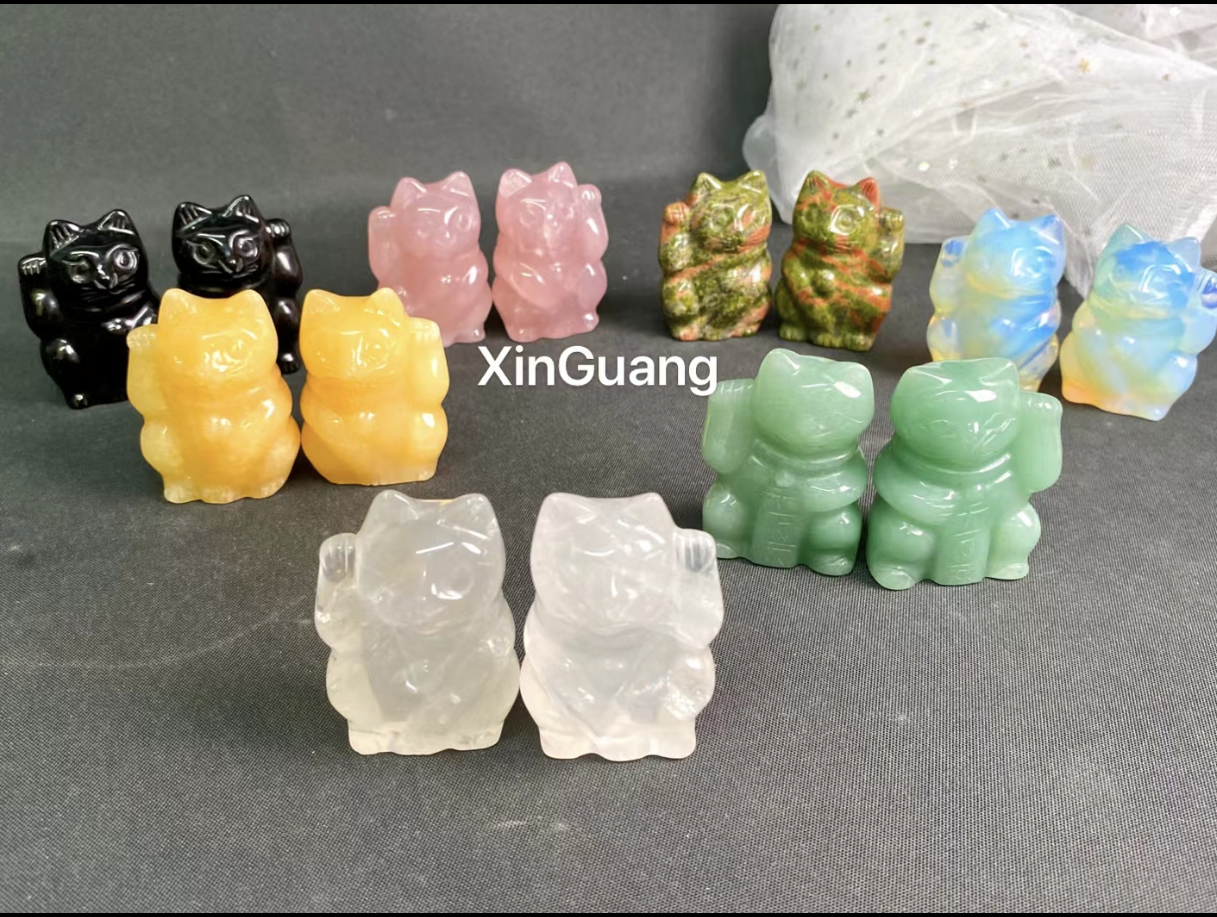 Assorted stone Lucky cat 2-inch